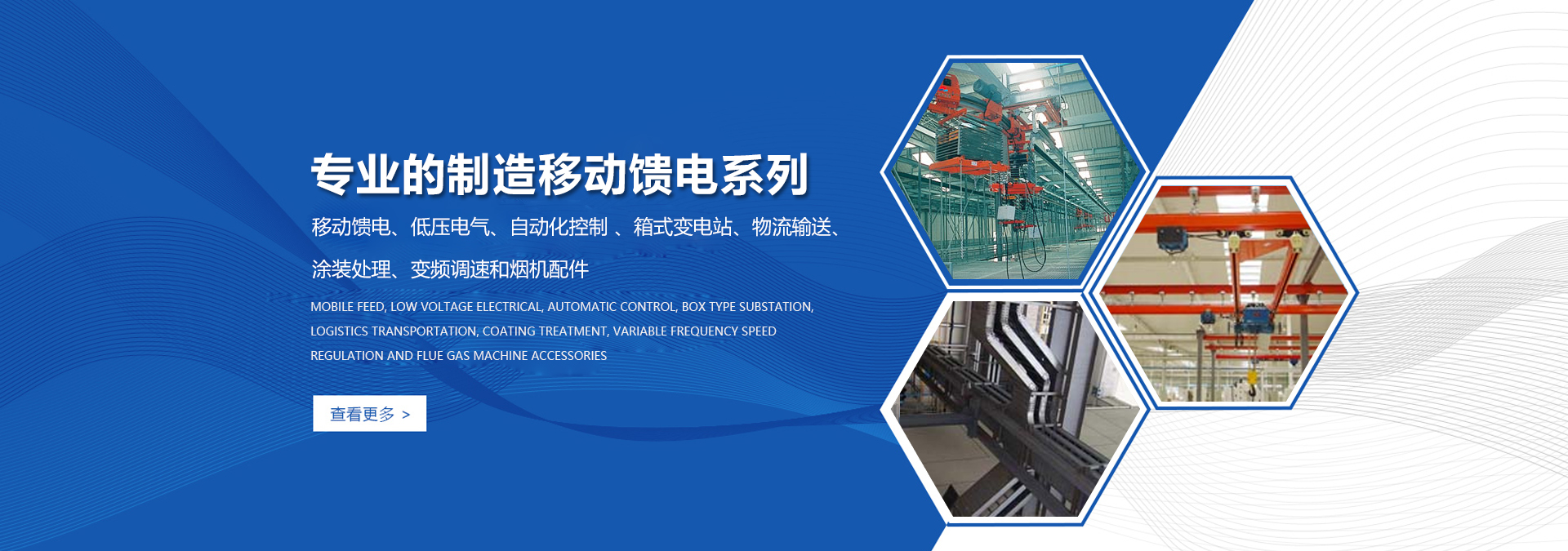 公司依靠科技進步和產(chǎn)品 創(chuàng)新,使產(chǎn)品規(guī)模不斷擴大,目前已具有規(guī)模生 產(chǎn)能力的主要產(chǎn)品有:移動饋電、低壓電氣、自動化控制 、箱式變電站、 物流輸送、涂裝處理、變頻調(diào)速和煙機配件等10大系列100